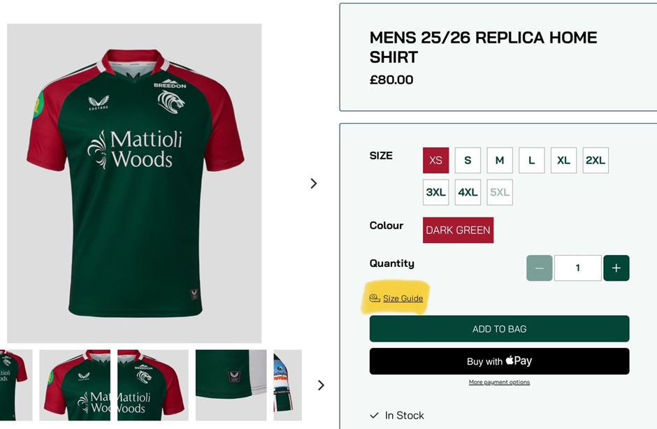 Each product displays the size guide chart. This can be found on each product page under the sizing.